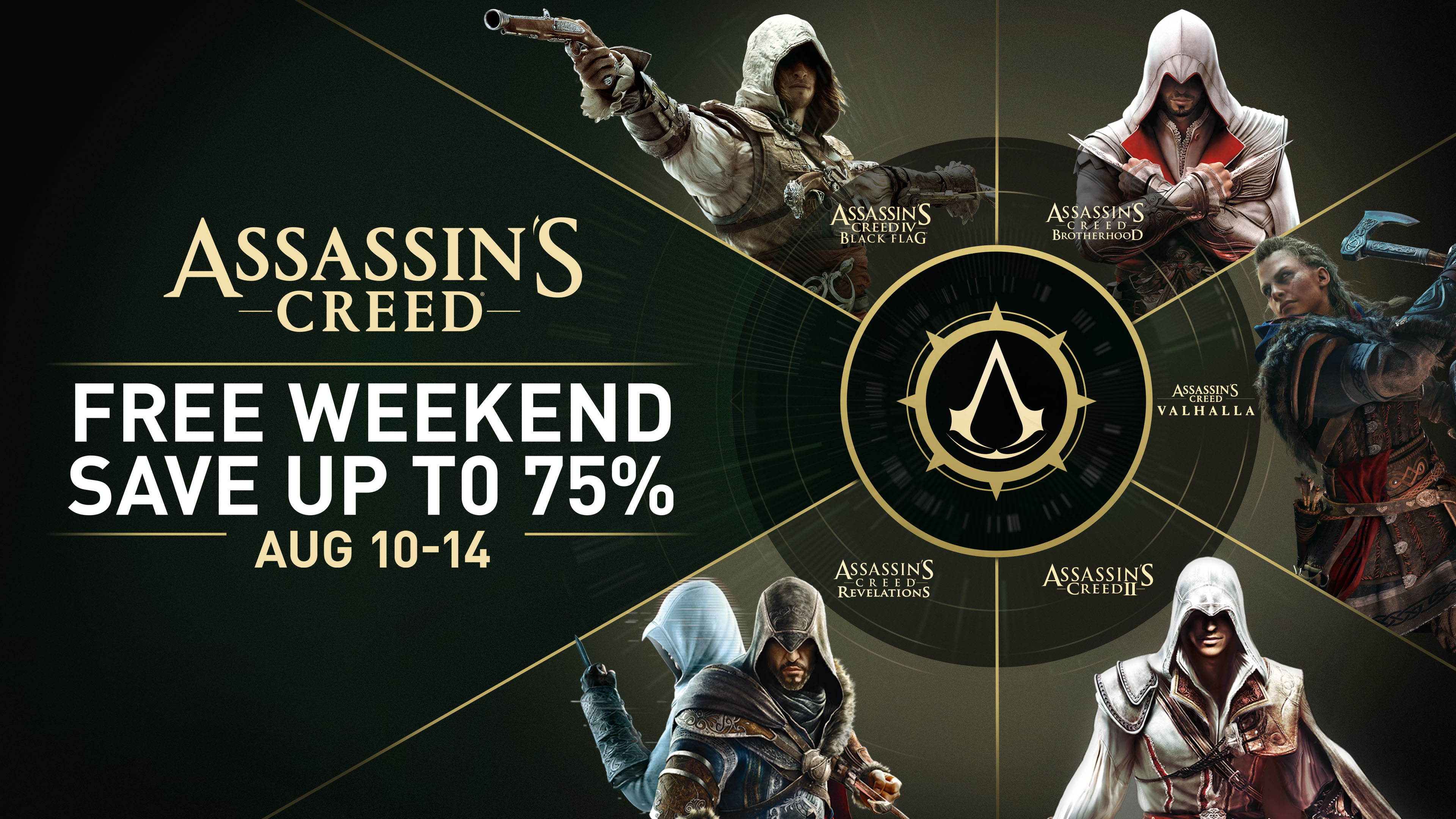 Düsseldorf, 8. August 2023 – Ubisoft® kündigte heute ein besonderes Free Weekend-Event an, das bis zu fünf Assassin's Creed®-Spiele auf Xbox Series X | S, Xbox One, PlayStation®5, PlayStation®4 sowie Windows PC über den Ubisoft Store und den Epic Games Store umfasst. Je nach Plattform werden Assassin's Creed® II, Brotherhood, Revelations, Black Flag und Valhalla ab dem 10. August bis zum 14. August kostenlos spielbar sein.*