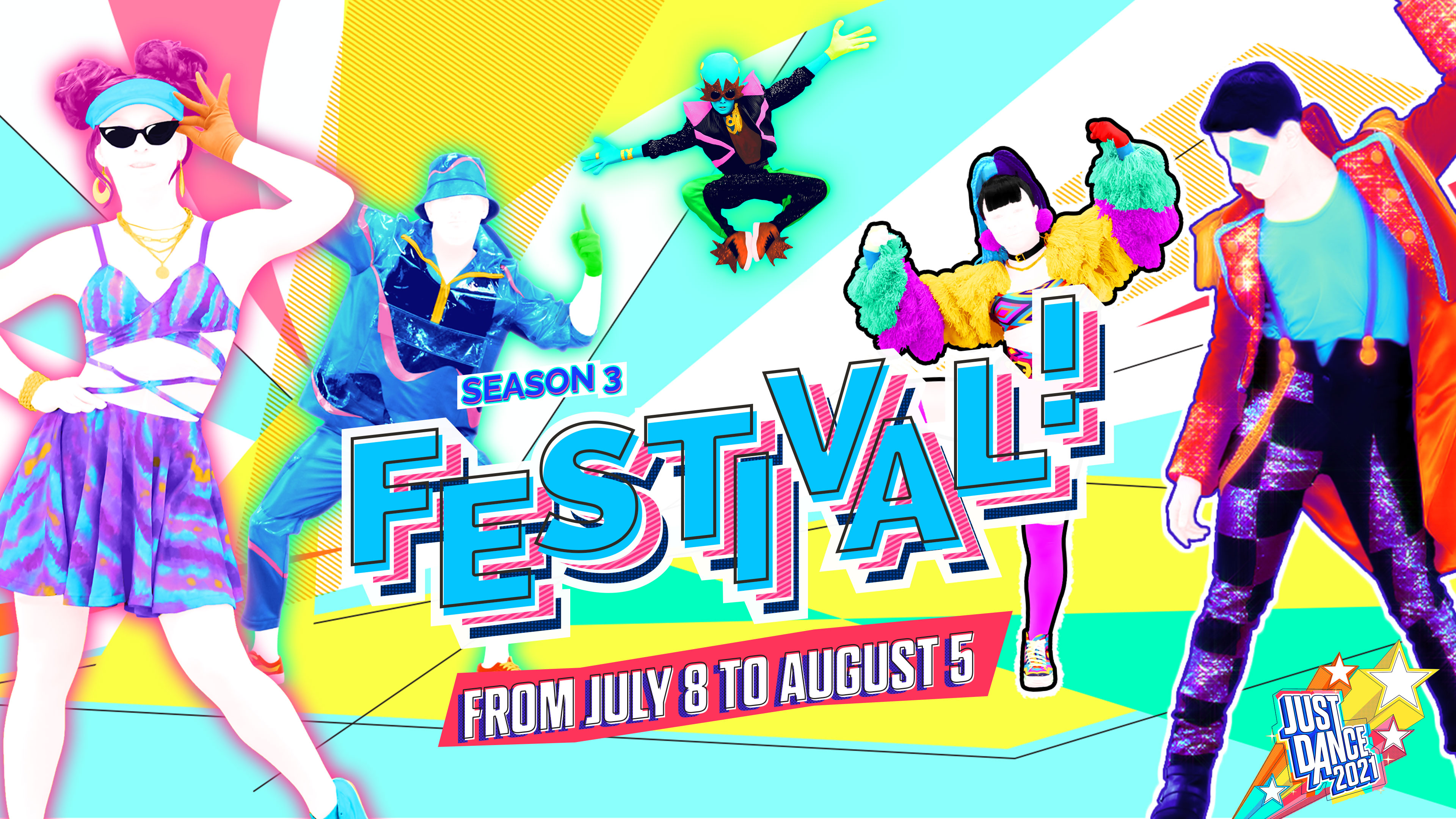 Vom 15. Juli bis zum 5. August wird Season 3 Festival! die drei neuen exklusiven Songs enthüllen, die über Just Dance 2021 mit einem laufenden Just Dance Unlimited-Abonnement oder einer aktiven Probezeit zugänglich sind und mit denen die Spielenden ihre Tanzbegeisterung weiter ausleben können.