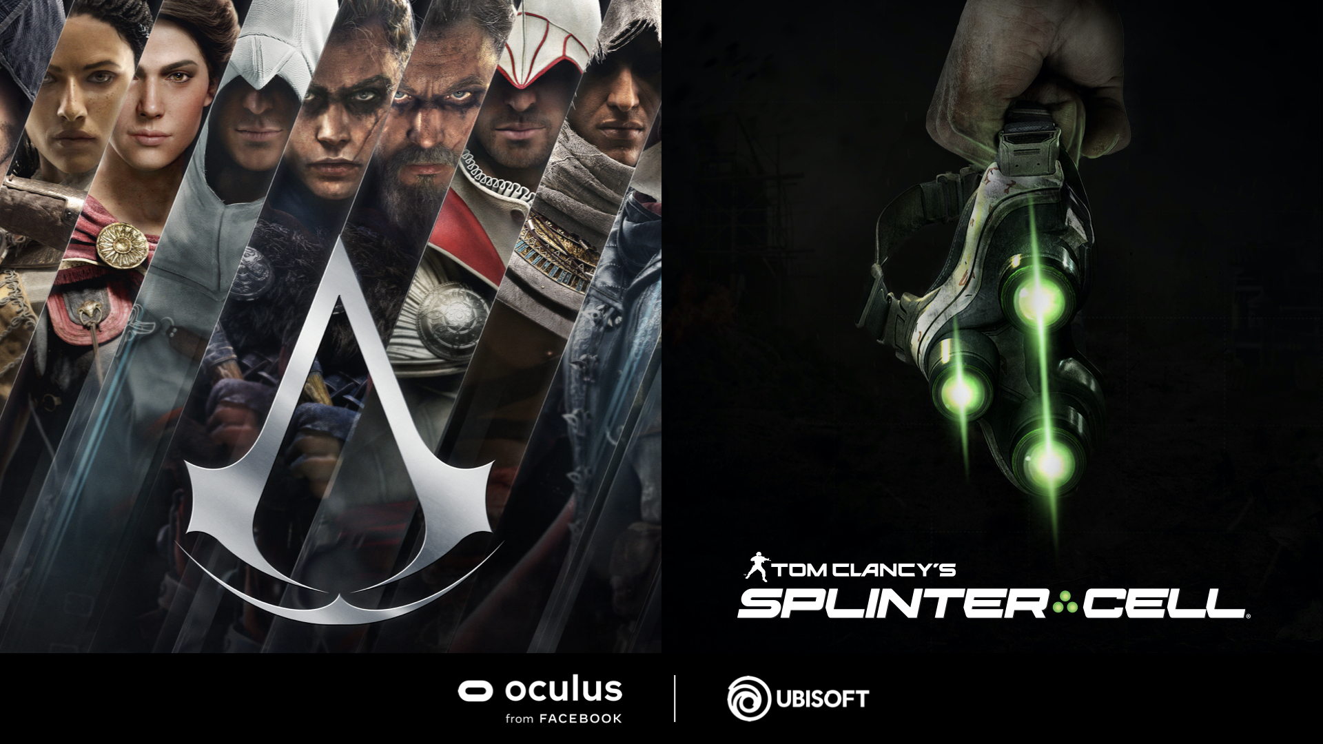 Düsseldorf, 17. September 2020 – Ubisoft verkündete im Rahmen der Facebook Connect, dass zwei neue Spiele exklusiv für die Oculus-Plattform in Entwicklung sind. Die Spiele basieren auf den erfolgreichen Spielemarken Assassin’s Creed und Tom Clancy’s Splinter Cell und bieten mittels des einzigartigen, immersiven VR-Erlebnisses ein Abenteuer, das den beiden Spiele-Reihen gerecht bleibt.